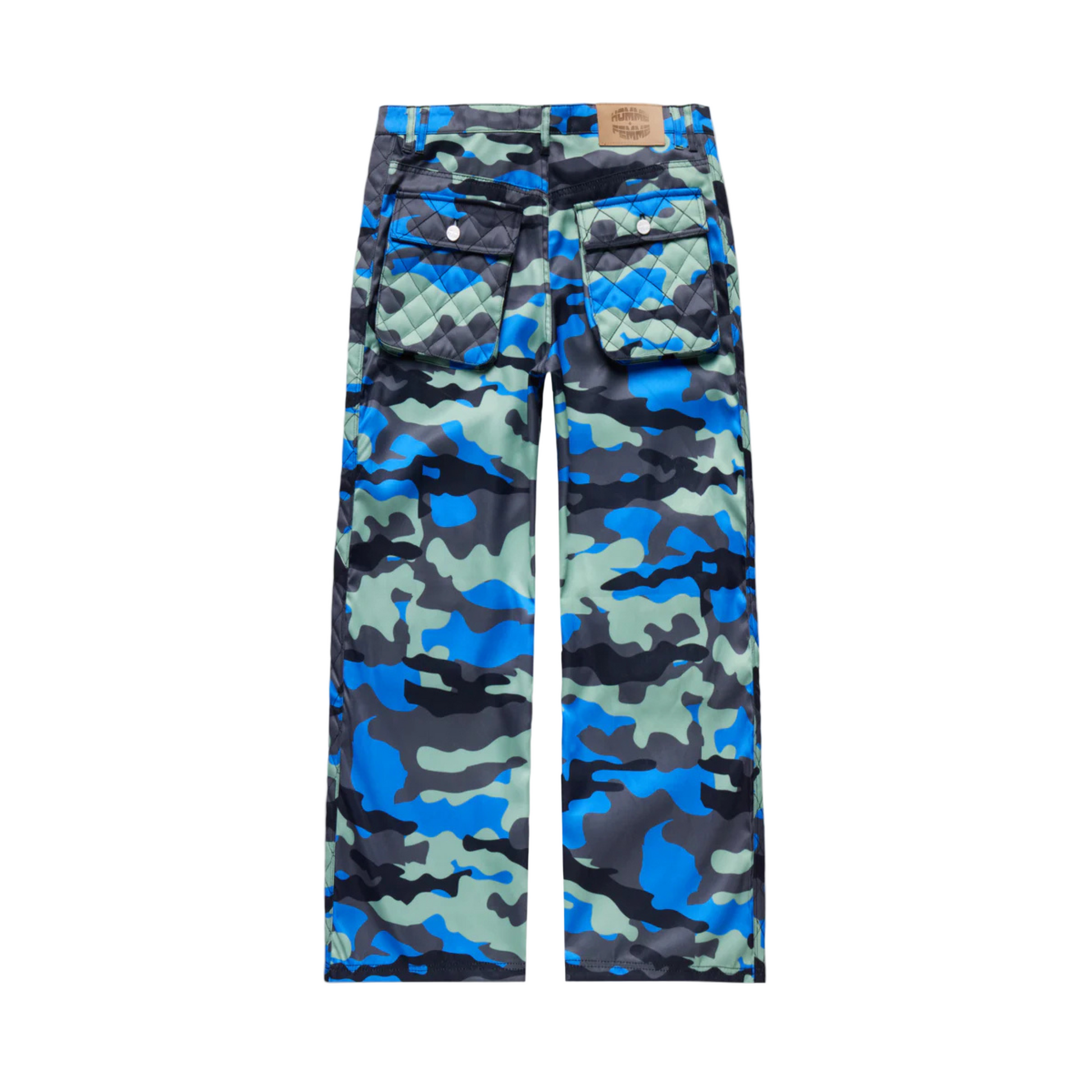 Built for movement, statement, and longevity—the HOMME FEMME Phantom Cargo Pants reimagine utilitarian design through a bold blue camouflage print and quilted cargo detailing. Featuring oversized patch pockets with engraved Homme Femme hardware, reinforced stitching, and a straight-leg cut, these pants are engineered for both performance and presence. At $165, they anchor any fit with undeniable street-luxury edge.