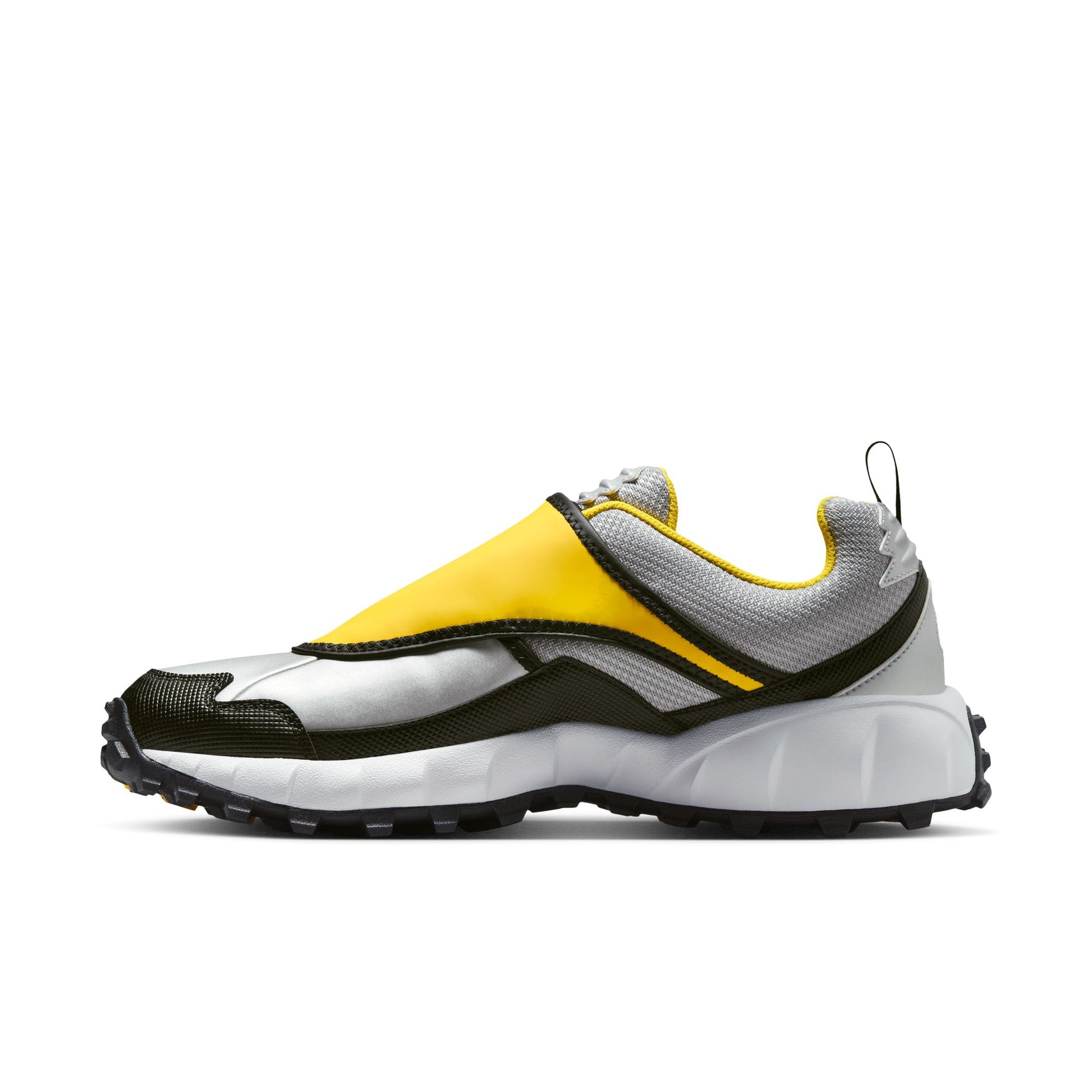 This 2003 trail runner is back and ready for the next adventure. A shroud inspired by tent flaps covers the laces for a sleek look. And the rugged outsole is ready to hit the road, whether you're in the city or on the trail.